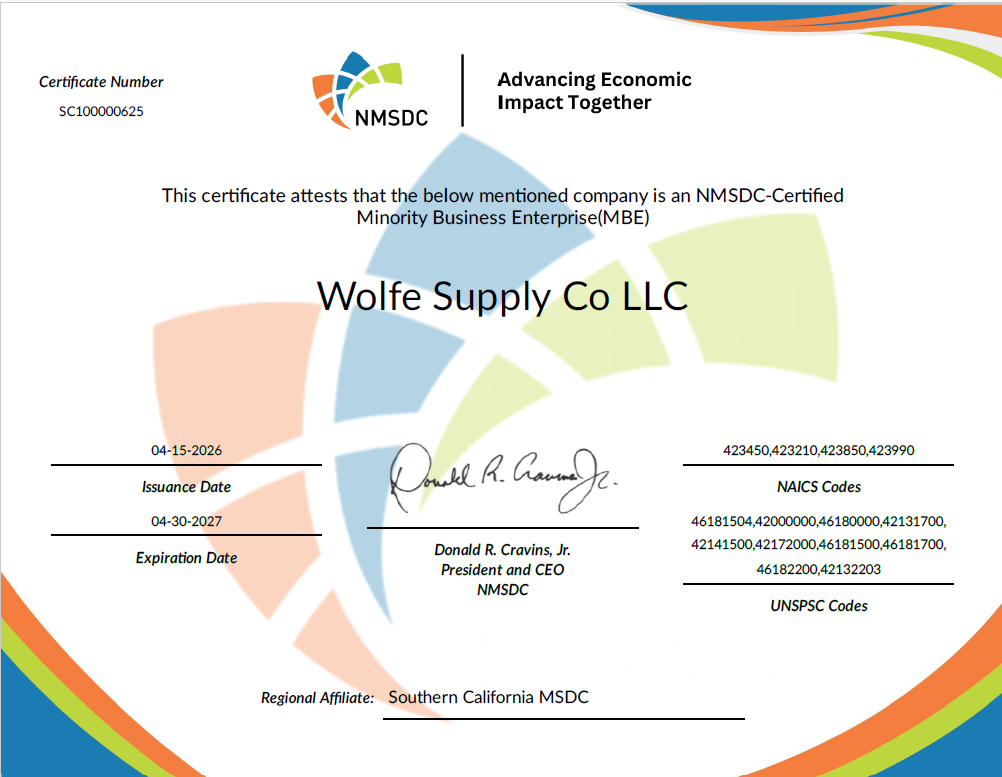 Wolfe Supply Co is proud to be a Woman and Minority Owned Business.